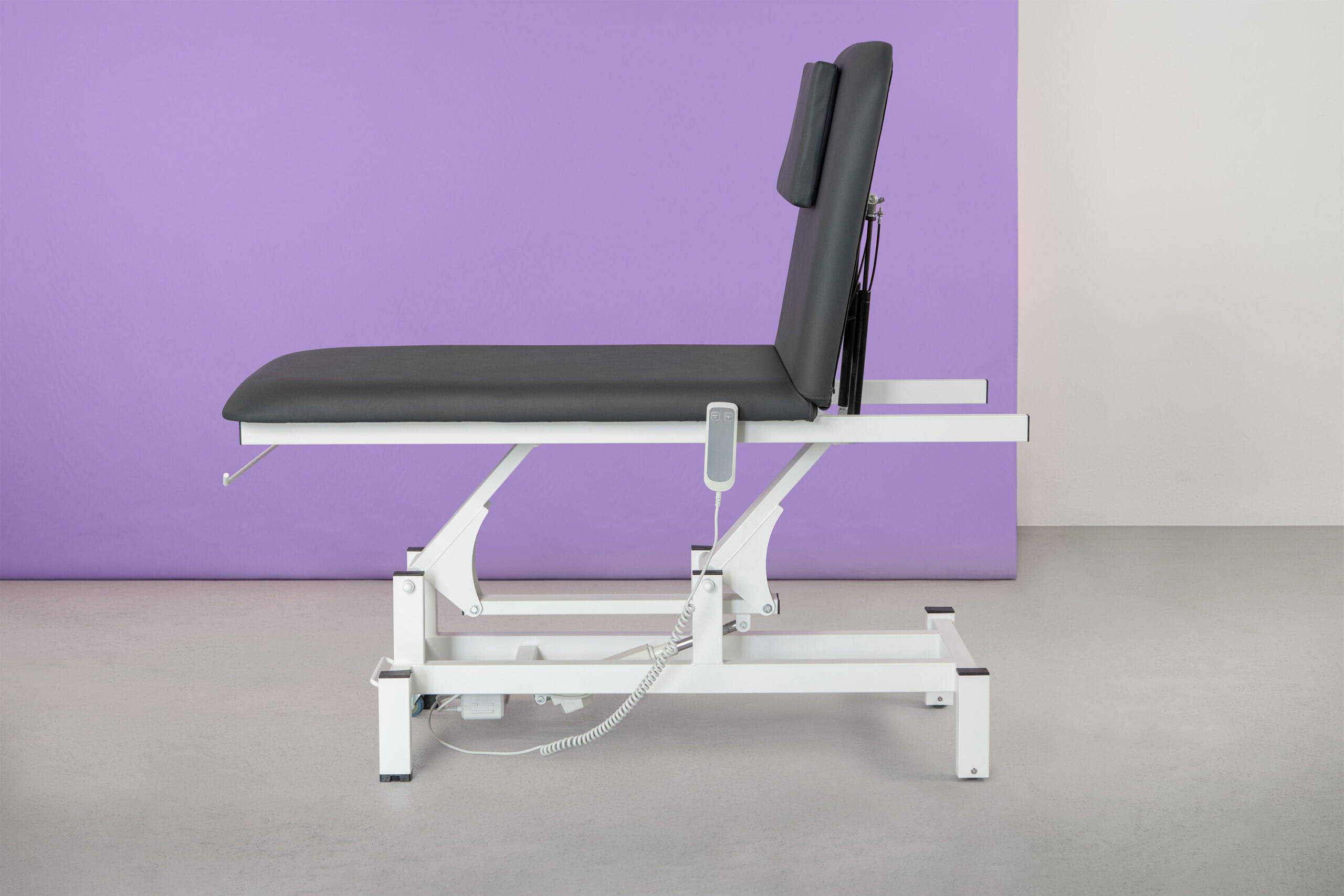Das Rückenpolster der VITAL gris ist positiv verstellbar über Gasdruckfedern, während die Höhe der Liege bequem über eine kabelgebundene Handfernbedienung eingestellt werden kann. So wird ergonomisches Arbeiten möglich und die Behandlung für Patienten angenehm gestaltet.
