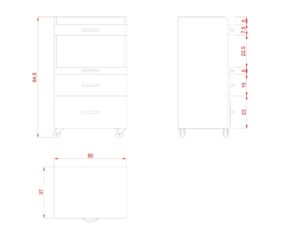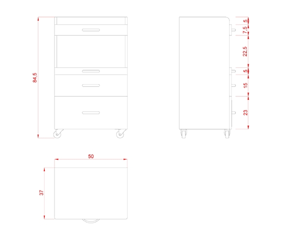 Mit zwei Schubladen und zwei ausziehbaren Ablageflächen lassen sich Geräte und Zubehör optimal verstauen, während der Wagen dank 360°-drehbarer Rollen flexibel zwischen Behandlungsräumen bewegt werden kann.